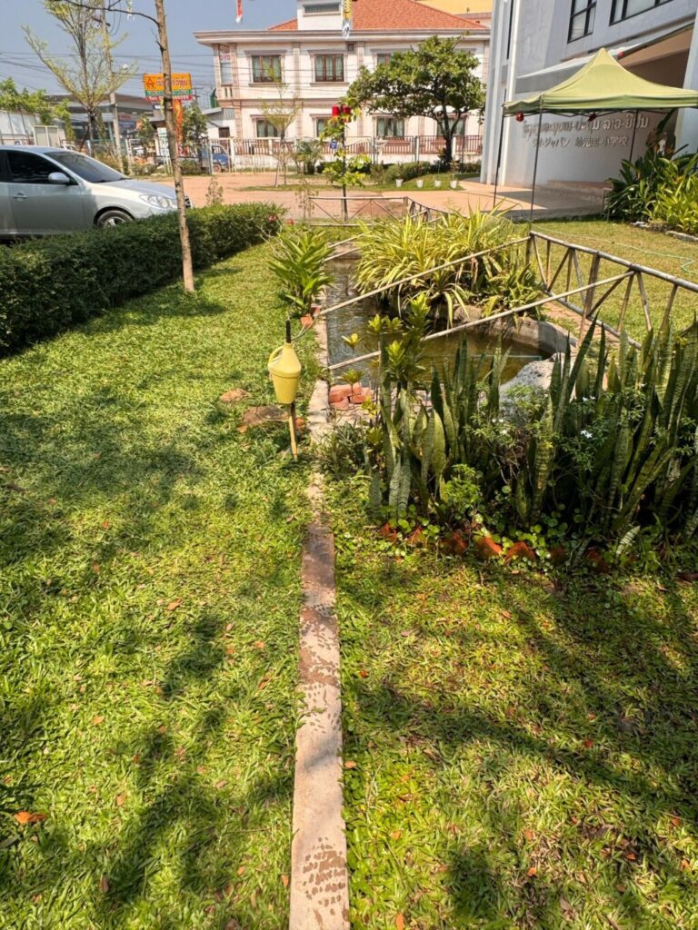 The garden renovation work for the Lao Japanese Kindergarten and Elementary School was completed in three days. A small Japanese garden, pond, and waterfall were created.🇯🇵🇱🇦🙏🙏🙏