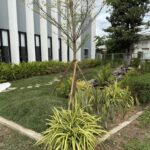 玄関前のアプローチのリフォーム工事。ビオトープも導入